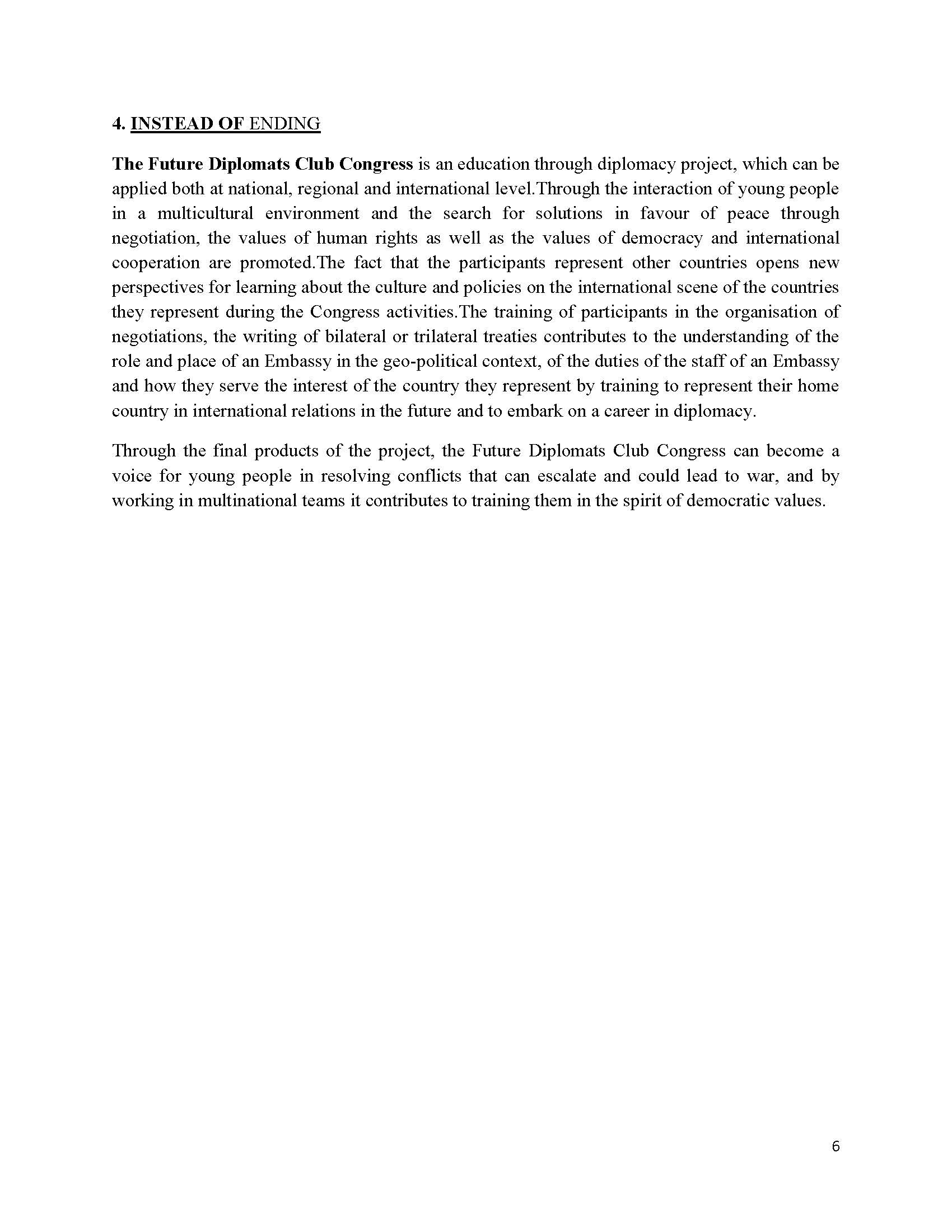 OFFICIAL BROCHURE OF THE FUTURE DIPLOMATS CLUB CONGRESS